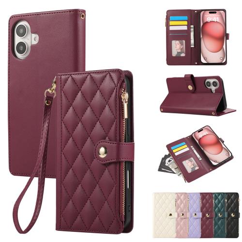 Rosbtib iPhone 16 ケース 手帳型 財布型 カバー iPhone16 ケース 手帳型 おしゃれ ファスナー型 小銭入れ カード収納 携帯カバー いphone 16 ケース 手帳型 エレガント チェック柄 刺繍 アイフォン16 ケース 高級PUレザー 肌触り良い ストラップ付き iPhone 16 スマホケース マグネット式開閉式 スタンド機能 全面保護(レッド)