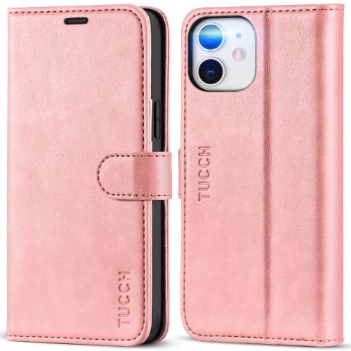 TUCCH iPhone 12 対応 ケース iPhone 12 プロケース手帳型 カード収納 [RFIDブロッキング] 横置きスタンド機能 高級PU合皮 柔軟なTPU素材 マグネット式 アイフォン12 手帳ケース スマホケース(6.1 インチ対応)ローズピンク