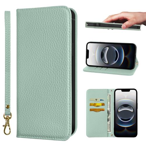 NanHou iPhone 16e ケース 手帳型 超繊皮 RFIDト 財布型 カバー iPhone 16 e 手帳型 耐衝撃 保護カバー 内蔵マグネット携帯カバー カードポケット スタンド機能 リストバンド - ライトグリーン