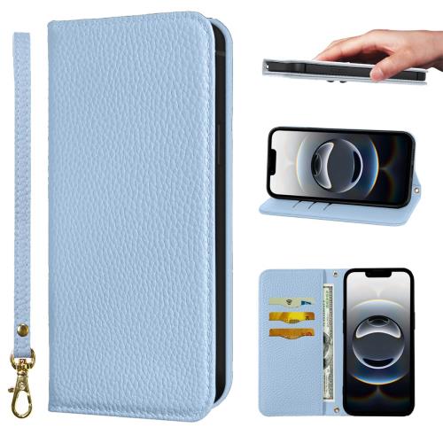 NanHou iPhone 16e ケース 手帳型 超繊皮 RFIDト 財布型 カバー iPhone 16 e 手帳型 耐衝撃 保護カバー 内蔵マグネット携帯カバー カードポケット スタンド機能 リストバンド - ライトブルー