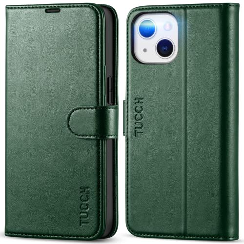TUCCH iPhone 13 対応 手帳型 ケース iPhone 13ケース 高級PU合皮 カードポケット [RFIDブロッキング] 横置きスタンド機能 衝撃吸収 マグネット内蔵 アイフォン13手帳ケース スマホケース(iPhone 13 5G 2021年発売 6.1 インチ対応)ミッドナイトグリーン