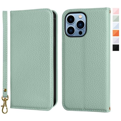 iPhone 13Pro Max ケース 手帳型 超繊皮カバー 手帳型 耐衝撃 保護カバー 内蔵マグネット財布型 携帯カバー カードポケット スタンド機能 リストバンド NanHou - ライトグリーン
