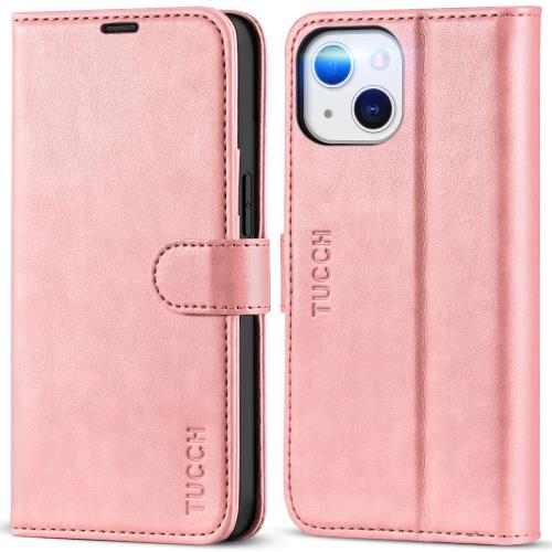 TUCCH iPhone13 対応 ケース iPhone 13 ケース 手帳型 カードポケット [RFIDブロッキング] 高級合皮 横置きスタンド機能 マグネット式 便利 アイフォン13 手帳ケース スマホケース(iPhone 13 5G 6.1 インチ 2021年発売 対応)ローズピンク