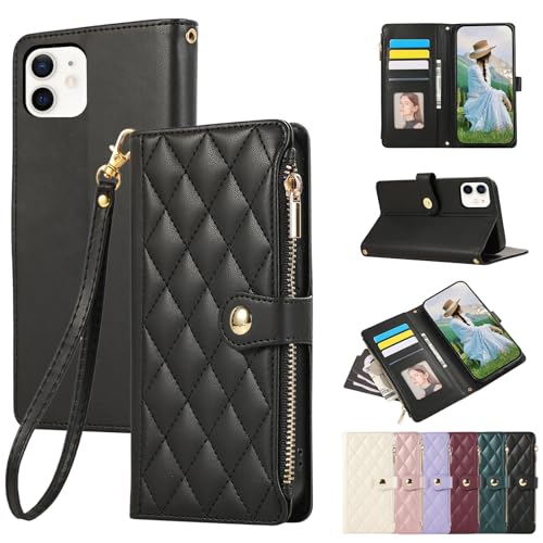 Rosbtib iPhone 11 ケース 手帳型 財布型 カバー アイフォン11 ケース 手帳型 おしゃれ ファスナー型 小銭入れ いphone11 ケース 手帳型 カード収納 携帯カバー iphone11ケース カバー エレガント チェック柄 刺繍 高級PUレザー 肌触り良い iPhone11 スマホケース ストラップ付き マグネット式開閉式 スタンド機能 全面保護(ブラック)