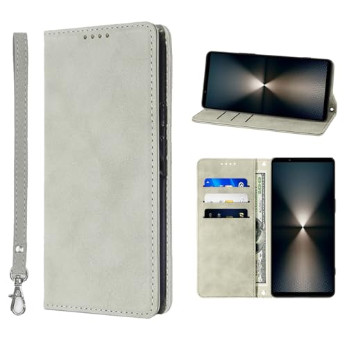 NanHou Xperia 10VI ケース 手帳型 つや消し レザー スタイル質感 SO-52E SOG14 手帳型 耐衝撃 保護 10VI カバー 内蔵マグネット 財布型 SO-52E SOG14 携帯カバー カードポケット スタンド機能 リストバンド Sony エクスペリア 10VI 手帳型 - ライトグレー
