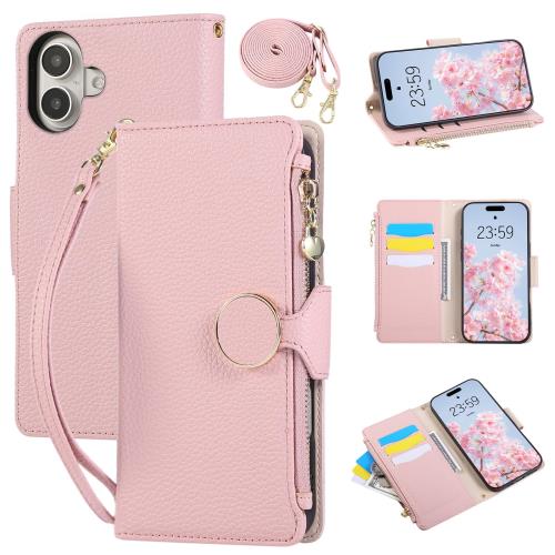 Rosbtib iPhone 16 Plus ケース 手帳型 ショルダー 財布型カバー いphone16plus ケース おしゃれ ファスナー型 小銭入れ カード収納 iPhone16Plusケース 手首/肩掛けストラップ付 マグネット式 スタンド機能 アイフォン16Plus 手帳型ケース 可愛い シンプル 女性 人気 アイフォン16プラス スマホケース 肌触り良い 全面保護(ピンク)
