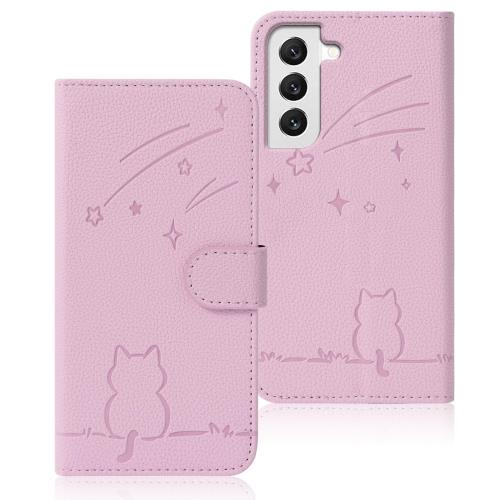 Rosbtib Galaxy S21 ケース 手帳型 ギャラクシーs21 ケース 流れ星子猫 galaxys21ケース SC-51B SCG09 ケース 可愛い 猫柄 galaxy sc51b ケース 耐衝撃 galaxy s21 5G スマホケース オシャレ 軽量 耐久性 スタンド機能 カード収納 PUレザー マグネット 着脱しやすい galaxys21 カバー 6.2インチ対応(ピンク)
