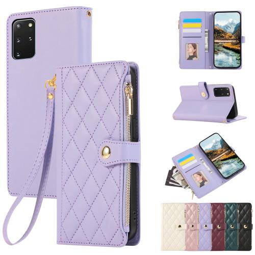 Rosbtib Galaxy S20 Plus ケース 手帳型 財布型 カバー SC-52A ケース Galaxy S20+ 5G ケース おしゃれ ファスナー型 小銭入れ SCG02 ケース カード収納 携帯カバー ギャラクシーS20プラス ケース 刺繍 高級PUレザー 肌触り良い Galaxy S20 Plus スマホケース ストラップ付 マグネット式 スタンド機能 全面保護(パープル)