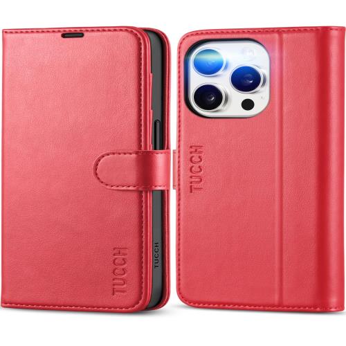 TUCCH iPhone 15 Pro 対応 ケース 手帳型 iPhone 15 プロ ケース 手帳型 高級PU合皮 衝撃吸収 [RFIDブロッキング] カード収納 スタンド機能 便利なマグネット式 アイフォン15 Pro カバー (2023年発売 アイフォン15 Pro 5G 6.1 インチ 対応) レッド