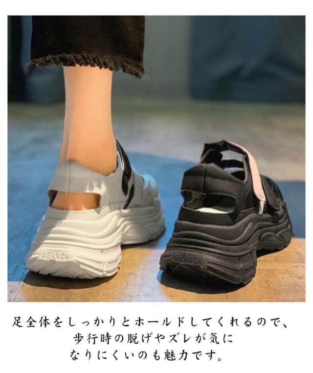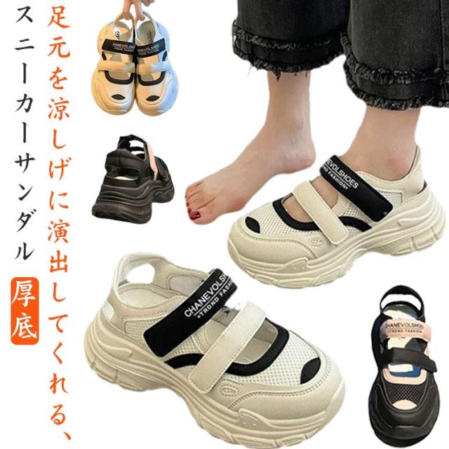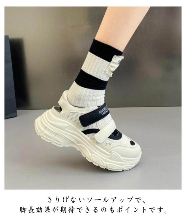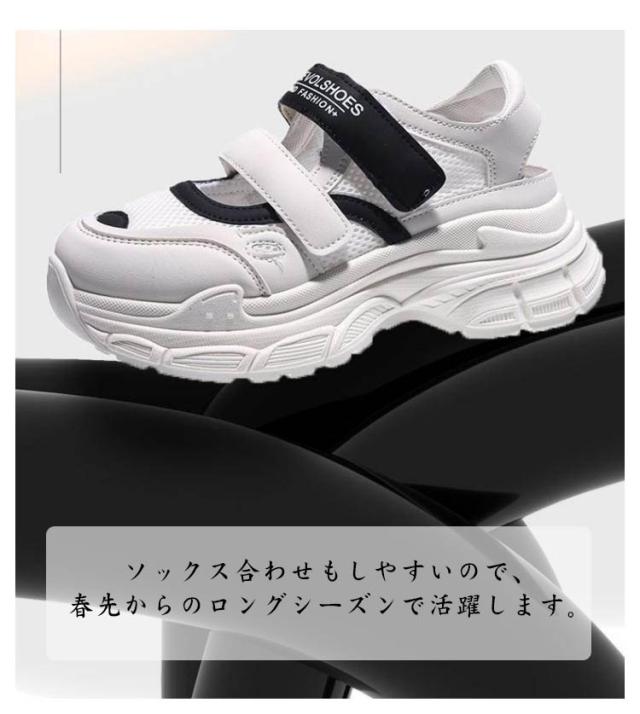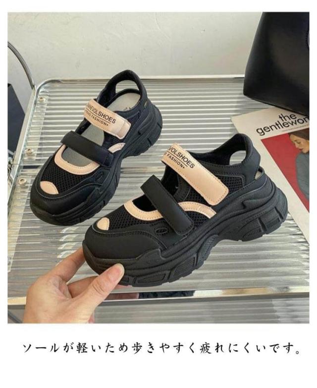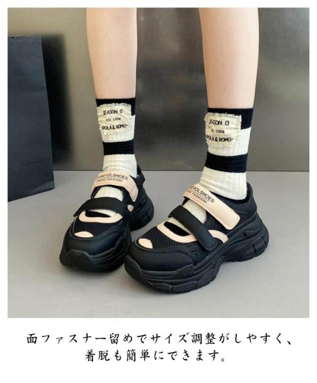 スニーカーサンダル 厚底 レディース メッシュ マジックテープ 履きやすい 歩きやすい ローカット 春 夏 シューズ 靴 軽量 通気性 紐なし 痛くない おしゃれ かわいい 疲れない 滑らない ベルクロ