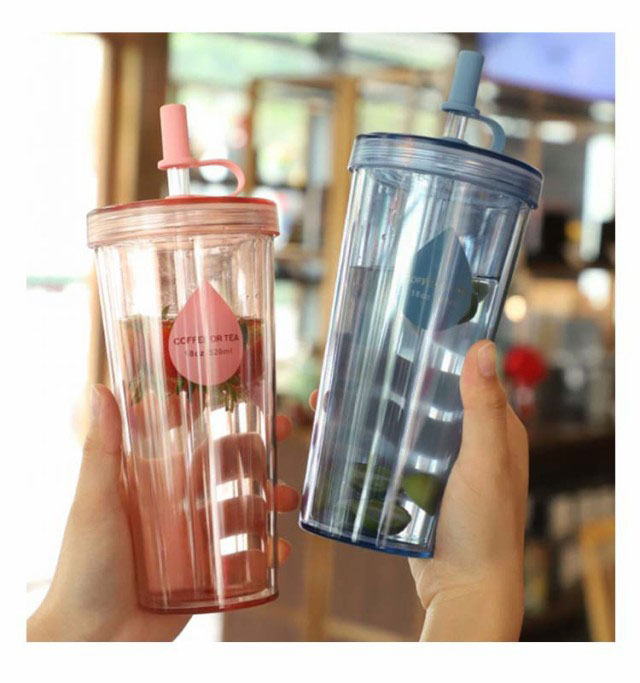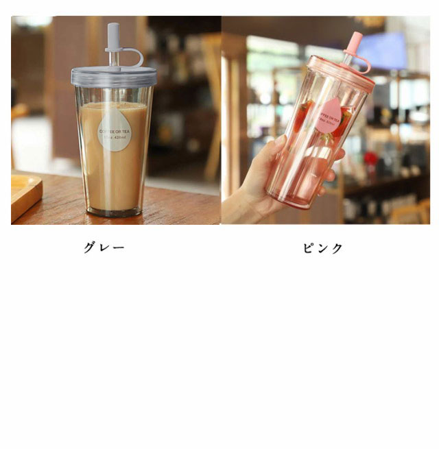 ストロー付きタンブラー 2層構造 ストローカバー付き ボトル ウォーターボトル 透明 タンブラー 漏れない 大容量 蓋付き タンブラー おしゃれ コーヒーカップ マグカップ コップ 女の子 高校生 オシャレ クリアボトル 持ち運び 軽い 水筒 320ML 420ML 520ML