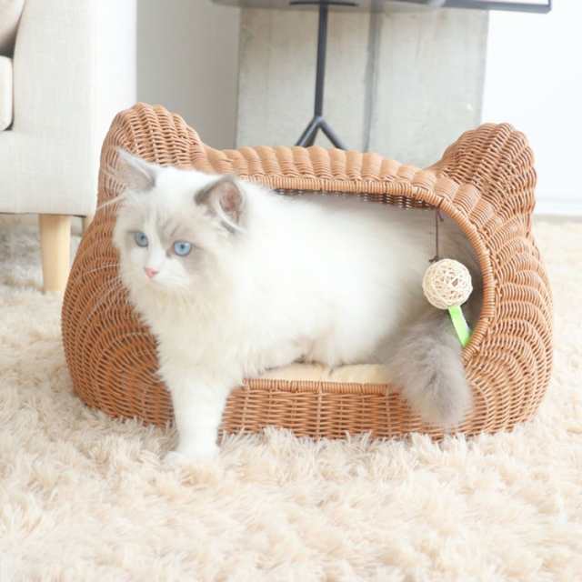 猫用ベッド ハウス キャットハウス猫 ベッド ラタン ドーム 猫用ベッド ペット用ベッド 犬ベッド 小動物 猫ベッド セミクローズド 通気性 快適 耐久性 噛み耐え 滑り止め 寒さ対策 ペット用ベッド 犬 ペットソファ 寝床 ペットハウス 春夏用 涼しい 天然素材 JITIFA