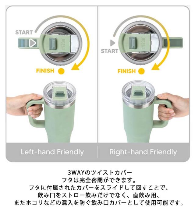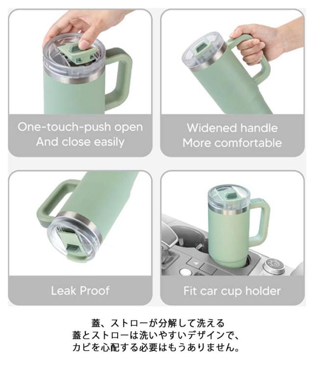 | 304ステンレス鋼・真空断熱・冬夏両用 900ml/1200ml ストロー・直飲み2way タンブラー ■倒れてもこぼれないので持ち運びに便利 密閉性の高い蓋で、液体の漏れを心配する必要がありません。 持ち運びに嬉しい仕様です。 ■プレミアムな品質 304ステンレス鋼を使用しており、安全性に配慮しています。 PBA、水酸化物、鉛、その他の非毒性物質は含まれていません。 ■表面をパウダーコーティング マットでお洒落なだけでなく、 濡れた手でも滑りにくいので、スポーツで汗をかくシーンでも安心です。 ■毎日の水補給にうれしい大容量タイプ 容量は600ml/750ml/900ml/1000ml/1200mlから選ぶことができます。 ■抜群の保温・保冷効果 保冷・保温に優れた真空断熱二重構造の水筒なので長時間の飲み頃の温度をキープします。 ■氷をたくさん入れてアイスペールとして 間口の大きさと真空断熱構造の保冷力を活かし、氷だけを長時間保管するアイスペールとしての使用も可能でロックアイスも入れられます。 ■3WAYのツイストカバー フタは完全密閉ができます。 フタに付属されたカバーをスライドして回すことで、飲み口をストロー飲みだけでなく、直飲み用、またホコリなどの混入を防ぐ飲み口カバーとして使用可能です。 ■蓋、ストローが分解して洗える 蓋とストローは洗いやすいデザインで、カビを心配する必要はもうありません。 ストローを使用することでパッと飲みやすく、トレーニングやデスクワークなどの水分補給におすすめです。 ■大口径でお手入れ楽ちん 手が入れる広口なので、水筒の底まで簡単に洗えます。 ■あらゆるシーンで活躍する水筒 大きな氷も入るワイドタイプなので自宅やオフィス、ドライブ、アウトドア、スポーツ観戦など様々なシーンで活躍します。 車のドリンクホルダーにピッタリサイズで、携帯性も抜群。 口が広いのでコーヒーをそのままドリップすることもできます。 ■漏れ防止・滑り止め・汗防止 水筒の表面はつや消しの質感と人間工学的科学に適合する溝がデザインされており、滑りにくく、摩擦に強いです。 汗をかいたり濡れたりしても握りやすい運動時にも適した水筒です。 ■カラーは6色 ホワイト、グリーン、パープル、ブラック、オレンジ、ブルーから選べ、男性女性どちらでも使用できます。 | |