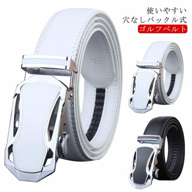 ゴルフ ベルト メンズ 穴なし ゴルフベルト メンズ ホワイト 白 ブラック スクエアバックルベルト 無段階 ゴルフベルト 110 115 120 125cm
