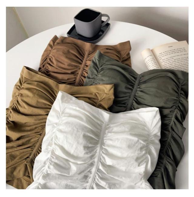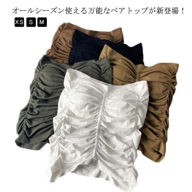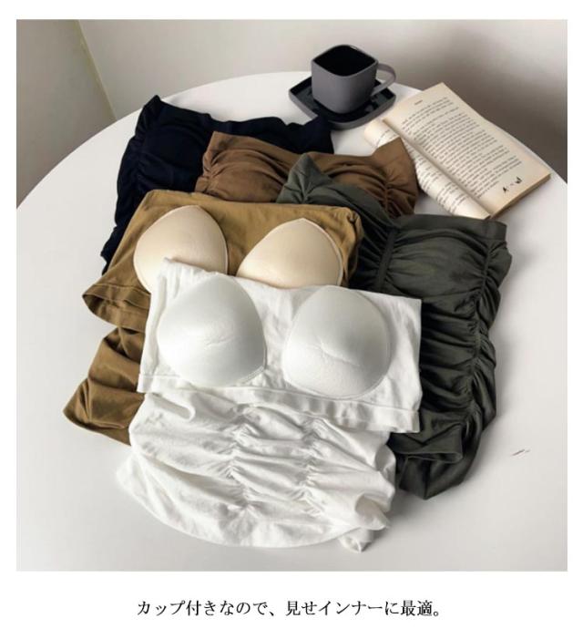 シャーリング チューブトップ ベアトップ カップ付き ブラトップ ダンス衣装 インナー 見せインナー ギャザー入り ストリート系 カジュアル XS S M