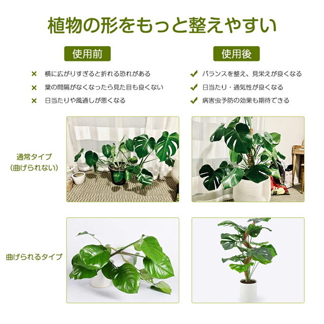 | 商品説明 | 【おしゃれな雰囲気に】 天然のココナツ繊維が原材料になり、自然になじみやすくて見栄えが良いです。見た目にもインテリア効果を崩さず、モンステラと一体になっておしゃれな雰囲気が味わえます。 【丈夫で耐久性が良い】 木の棒が土に入れやすく、植物に害なく、環境に優しい素材を採用しております。太くて耐久性が良くて、植物を強力に支え、倒れることを防げます。 【連結タイプ・長さ伸ばせる】 植物の成長に合わせて上に継ぎ足していけます。モンステラが盛んに成長しますので太くて長い支柱が必要です。上継ぎ足せば、植物をお好みの高さまで育てることができますので、成長ももっと楽しめます。 【植物の成長に良い】 繊維部に植物が巻き付きやすくなりますので水分も吸収しやすくなります。ココナツ繊維を使い、幹を安定させてあげることで、モンステラのバランスを整えることができます。バランスがよくなれば、葉が密集することが防げるので日当たりや風通し、また害虫予防の効果まで得られますし、株の異常にも早く気付くこともできます。 【適応植物】 ヘデラ類、ポトス、フィロデンドロン、モンステラシンゴニューム等 |