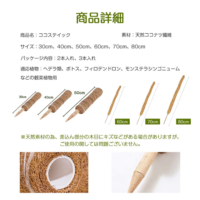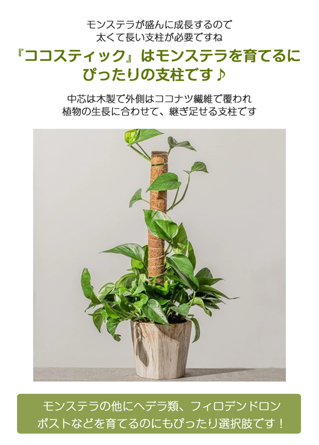 送料無料 春新作 モンステラ 支柱 ココスティック 観葉植物 園芸支柱 植物 ガーデニング用 花ささえ ココナッツ支柱 植物サポート つる性植物 トマト ポトス 園芸用 園芸支柱パーツ 高さ調整可 ココナッツ モンステラ支柱 植物成長 おしゃれ