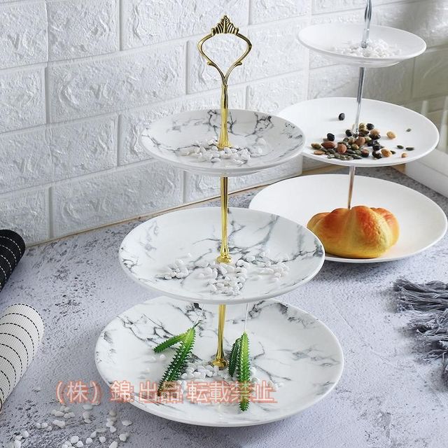選べる2タイプ ケーキスタンド ケーキプレート 陶器 3段 デザートプレート アフタヌーンティースタンド 北欧 株式会社錦大理石柄 白 幾何学模様 セラミック