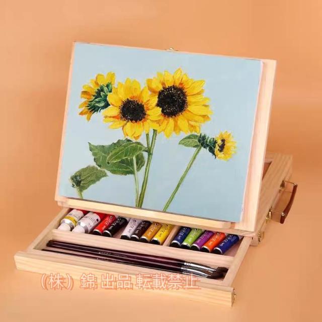 イーゼル卓上イーゼル木製イーゼル看板立てスケッチイーゼルケヤキ製錦折りたたみ画材画板油絵画材水彩画写生模写角度調節可能引出し33.5*4.5*25.8