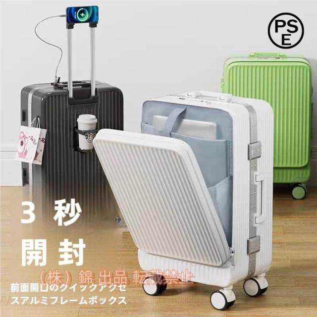 2023 最新モデ ルスーツケース キャリーケース フロントオープン 多機能カップホルダー付きスーツケース ビルトインカップホルダー ビジネス 錦機内持込超軽量