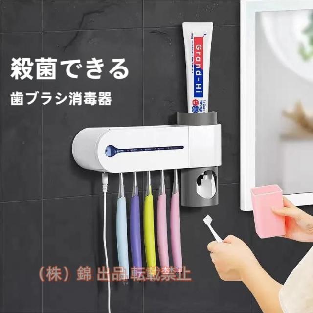 UV歯ブラシスタンド自動歯磨き粉チューブ壁掛け歯ブラシホルダー粘着式バスルーム収納UV除菌歯ブラシ株式会社錦ホルダースタンド一台多役バス用品2021新作
