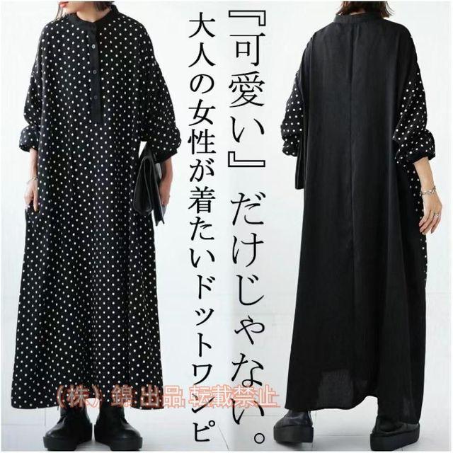 ドットワンピース 長袖 ワンピース レディース 春服 薄手 夏服 ロング丈 さらさらと 水玉 無地 錦 卒業式 入学式 スタンドカラー 可愛い大人 パーティードレス