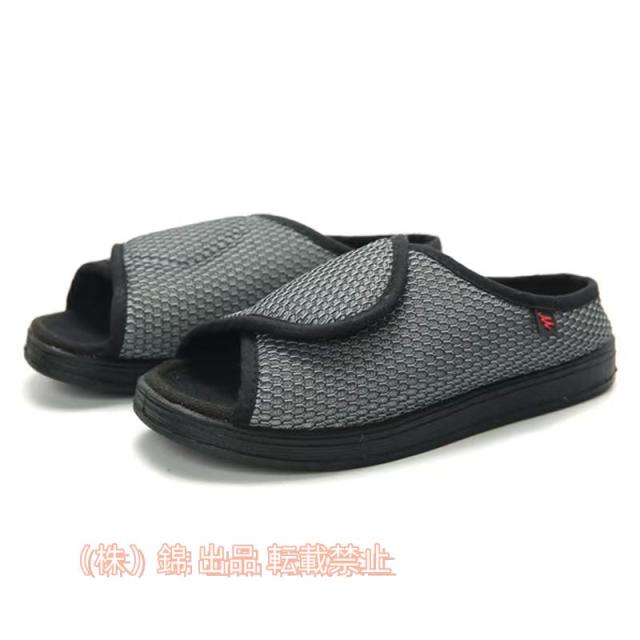 介護シューズ介護用靴フルオープンタイプサンダル室内外用株式会社錦リハビリシューズ調節可能高齢者用甲高幅広外反母趾リハビリ老人靴介護グレー26.0cm