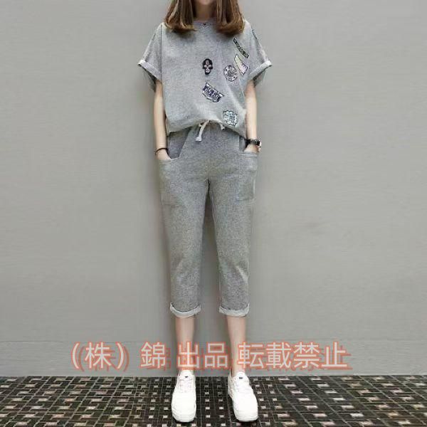 スウェット レディース 上下 Tシャツ 半袖 スウェットパンツ 7分丈 クロップドパンツ パンツ ポケ付き 部屋着株式会社錦 スリム 人気 大きいサイズ