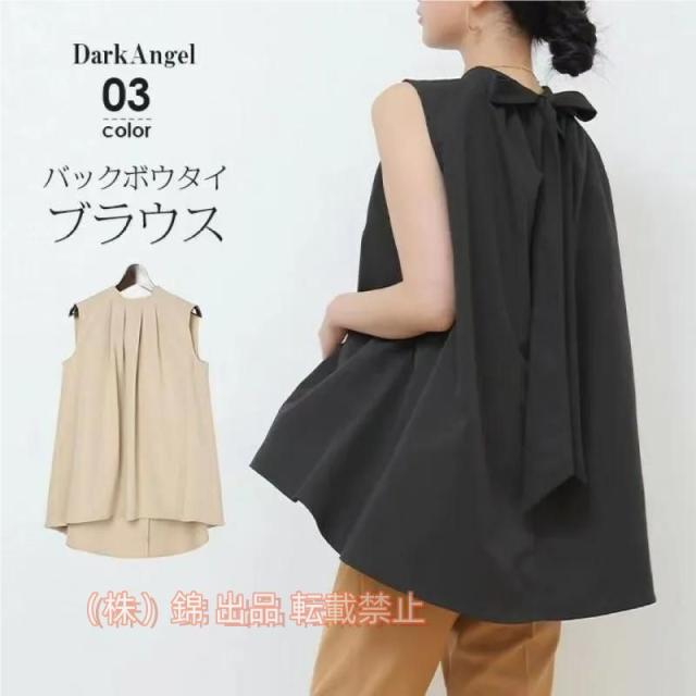★商品名:バックボウタイブラウス ノースリーブ レディース