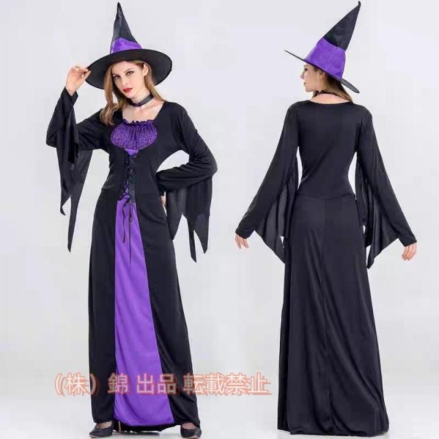 ハロウィンコスプレ魔女コスプレハロウィン衣装ロングスカートブラックドレス黒魔女大人ウィッチ魔女錦巫女悪魔ヴァンパイア鬼魔女女性ハロウィ