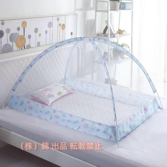 ベビー用折りたたみ式蚊帳 ムカデ対策 ベビー蚊帳 株式会社錦 底なし 虫除け 蚊よけ 持ち運べる 収納便利 極細メッシュ 涼しい 夏 安眠 取り付け簡単 (Blue)