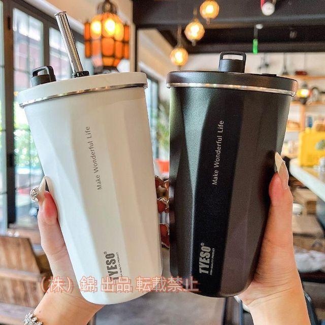 マグボトルタンブラー水筒ストロー付きコーヒーカップ600ml蓋付き大容量真空断熱保温保冷持ち運びマグボトル直飲み錦携帯マグ二重構造ステンレス