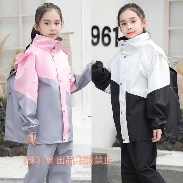 レインコート キッズ 子供 ランドセル対応 長袖 上下セット レインウェア 2点セット ズボン レインパンツ 小学生 中学生 防水 雨具 カッパ 合羽
