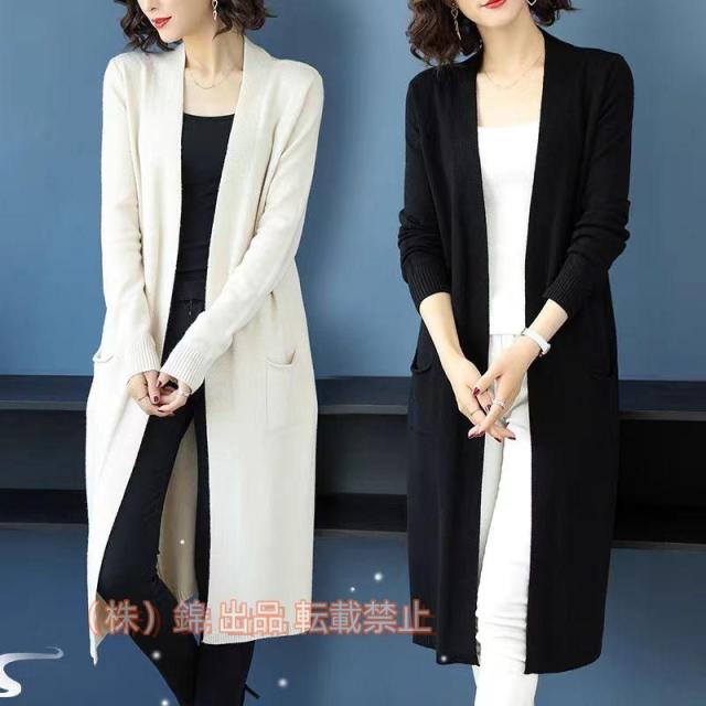 ロングカーディガン レディース ニットカーディガン 長袖 トップス 羽織り 上着 ニット 無地 アウター 株式会社錦 ポッケト付き