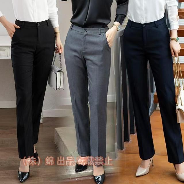 スラックス ビジネス フォーマル パンツ レディース スーツパンツ ストレートパンツ 美脚 オフィス パンツ 株式会社錦 ストレート ロング 黒