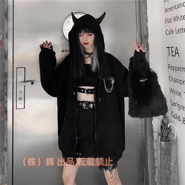 小悪魔 ビッグシルエット パーカー 暗黒 病み系 チェーン付き 地下株式会社錦 量産型 地雷系 ヲタク