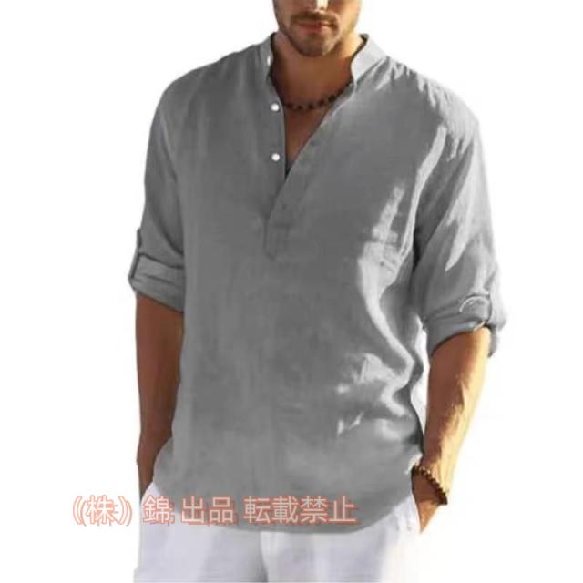 長袖シャツ メンズ カジュアルシャツ 無地 カプリシャツ スタンドカラーシャツ 株式会社錦綿麻風 ちょいワル 春服 夏物 秋物