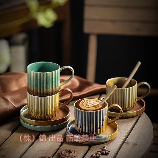 コーヒーカップソーサー5客セットおしゃれマグカップコーヒーマグコップ和風レトロ窯変大容量陶磁器錦カフェお祭り250ml台所ティーギフト雑貨
