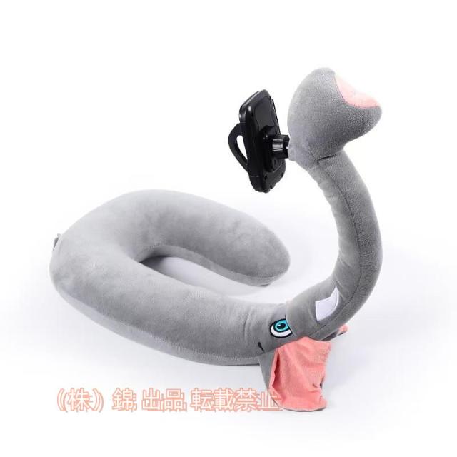 ネックピロー モバイルピロー U字型枕 スマホホルダー付きクッション 昼寝枕 ビーズクッション スマホクッション 株式会社錦自宅 旅行 (ゾウ(通常タイプ))
