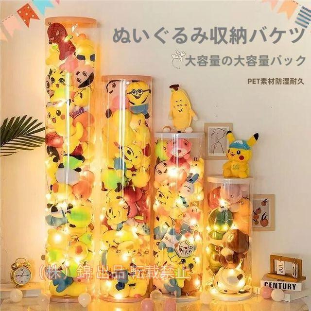 陳列ケース ,ようやくぬいぐるみが収納できる場所ができた,防塵・防湿 大容量収納 巨大な丸い収納桶。<br>