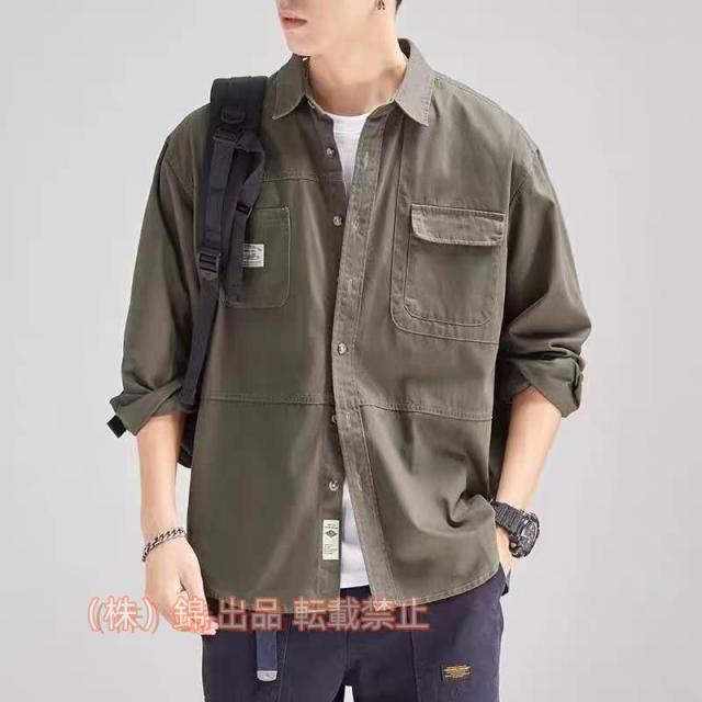 シャツ メンズ 長袖シャツ カジュアルシャツ シャツジャケット 無地 アメカジ 株式会社錦 胸ポケット ビジネスシャツ ワークシャツ 春 秋服 おしゃれ 父の日