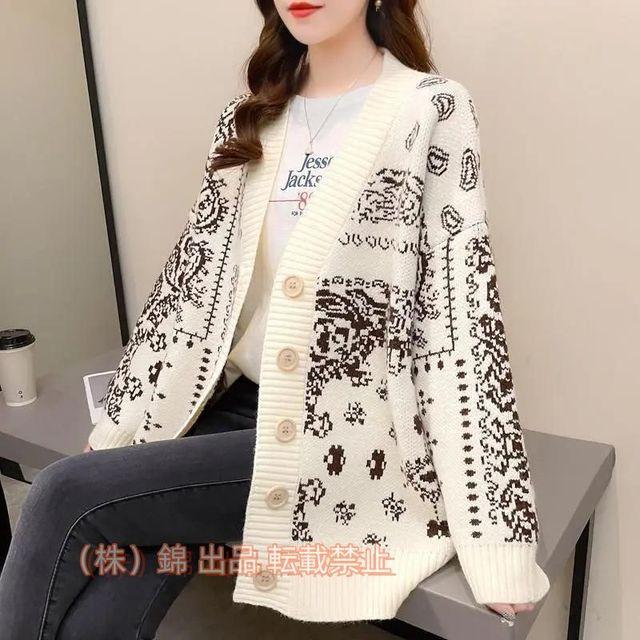 ニットカーディガン レディース セータートップス 外掛 秋冬 ゆったり 韓国風 コーデ新作 Vネック レトロ ウール 株式会社錦モコモコ ロング丈 オシャレ