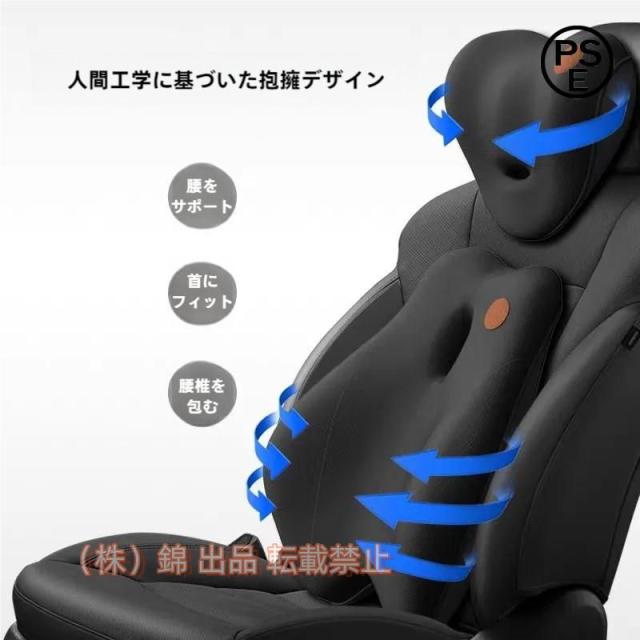 短納期 マッサージ機能付き 車用 クッション USB給電 ネックパッド 腰当て 疲労 腰痛 軽減 クッション 株式会社錦 低反発 クッションセット 長時間ドライブ