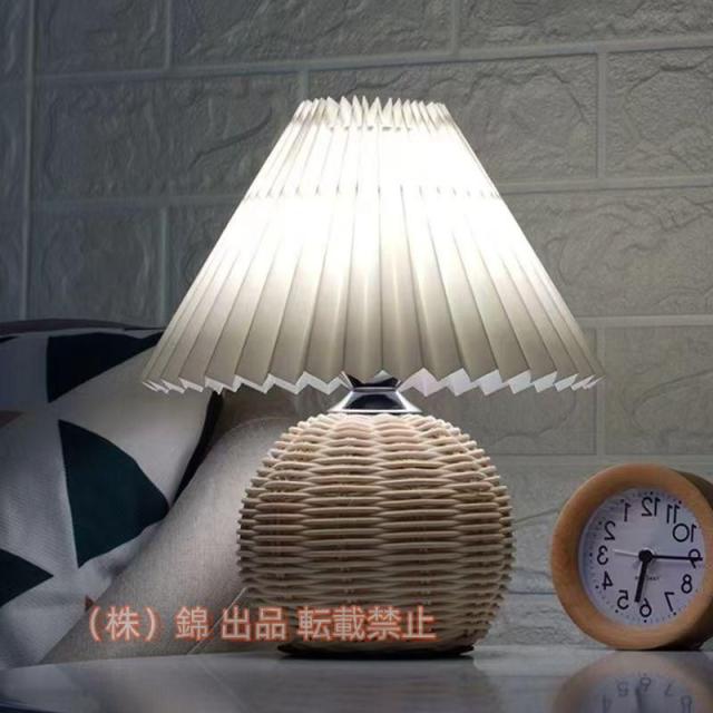 プリーツシェードテーブルランプおしゃれ藤織り土台テーブルライトデスクライトLED対応スタンドライト株式会社錦ベッドサイドライトインテリア韓国風