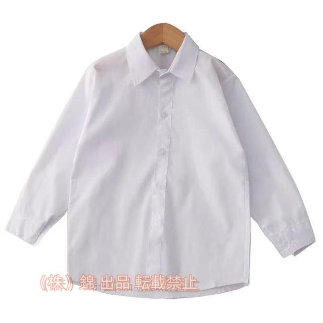 入学式 卒業式 春秋 シャッツ ワイシャツ Yシャツ 子供服 キッズ 男の子 女の子 長袖 ホワイト 無地 レギュラーカラー 株式会社錦ボタン付き シンプル