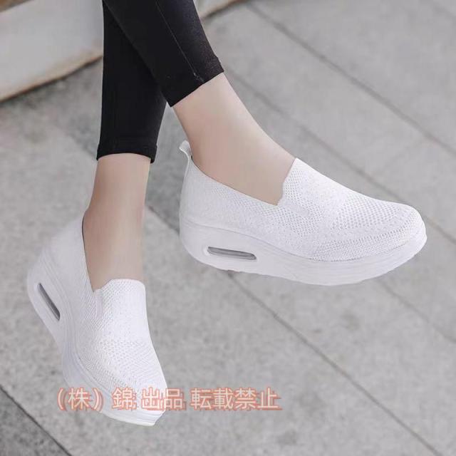 スニーカー レディース ナースシューズ 白船底 厚底看護師 介護通気 ムレ対策 クッション スリッポン 株式会社錦 メッシュ 疲れない衝撃吸収