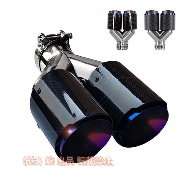 マフラーカッター カーボン ステンレス製 W型 2本出し パイプマフラー 自動車 後付け テールスロート 高級感 錦運動風 焼入れ加工 入口内径60?67mm 送料無料