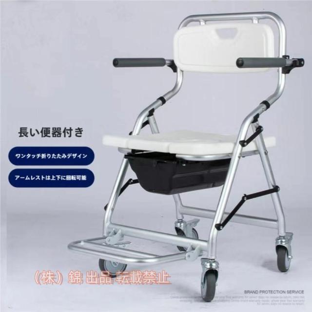 折りたたみ シャワーチェア:折りたためる省スペース設計で、狭い浴室にも収納可能、使用する時展開だけで組立が不要です。最大使用者体重/100kg 座った姿勢の保持ができない方や浴槽への移乗を楽に行いたい方におすすめの肘掛け付入浴用車いす。