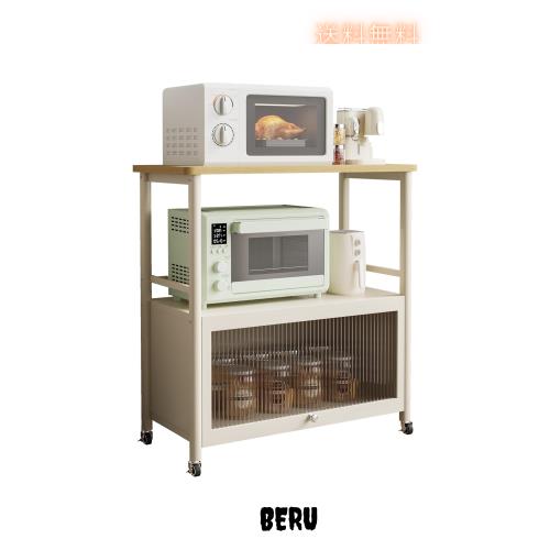 多機能性:最下層の隠し式の上開き扉が備わっており、扉はPC素材を使用しており、光を透過して透視しないです。扉は磁気で固定されるため、物を収納しながらほこりを防止して、あなたの台所をもっときれいにして、戸棚と段棚を自由に切り替えます;天板は木製で、平らで滑らかで、作業台にもなり、サイドテーブルにもなります。