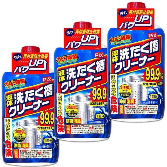 【まとめ買い】ピクス 液体 洗濯槽クリーナー ドラム式 縦型式 1回分 550g×3個セット 塩素系タイプ 除菌 洗濯機 クリーナー 洗浄剤 カビ取り